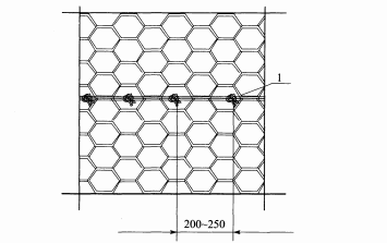 3) 相鄰格賓石籠組的網(wǎng)片結(jié)合面則每平方米綁扎處;