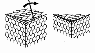 2) 間隔網(wǎng)與網(wǎng)身應(yīng)成90。相交,經(jīng)綁扎形成長方形或正方形固濱籠或固濱籠組,綁扎用扎絲由邊緣起連接,綁扎絲應(yīng)用與網(wǎng)絲同材質(zhì)的鋼絲,每一道綁扎應(yīng)是雙股線(下圖) 并絞緊,鋼絲的末端應(yīng)向里折。
